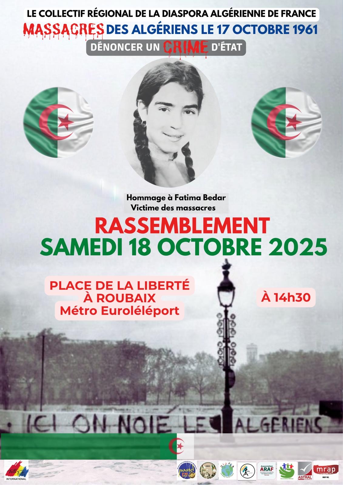 – Roubaix : Rassemblement place de la Liberté à 14h30 le samedi 18